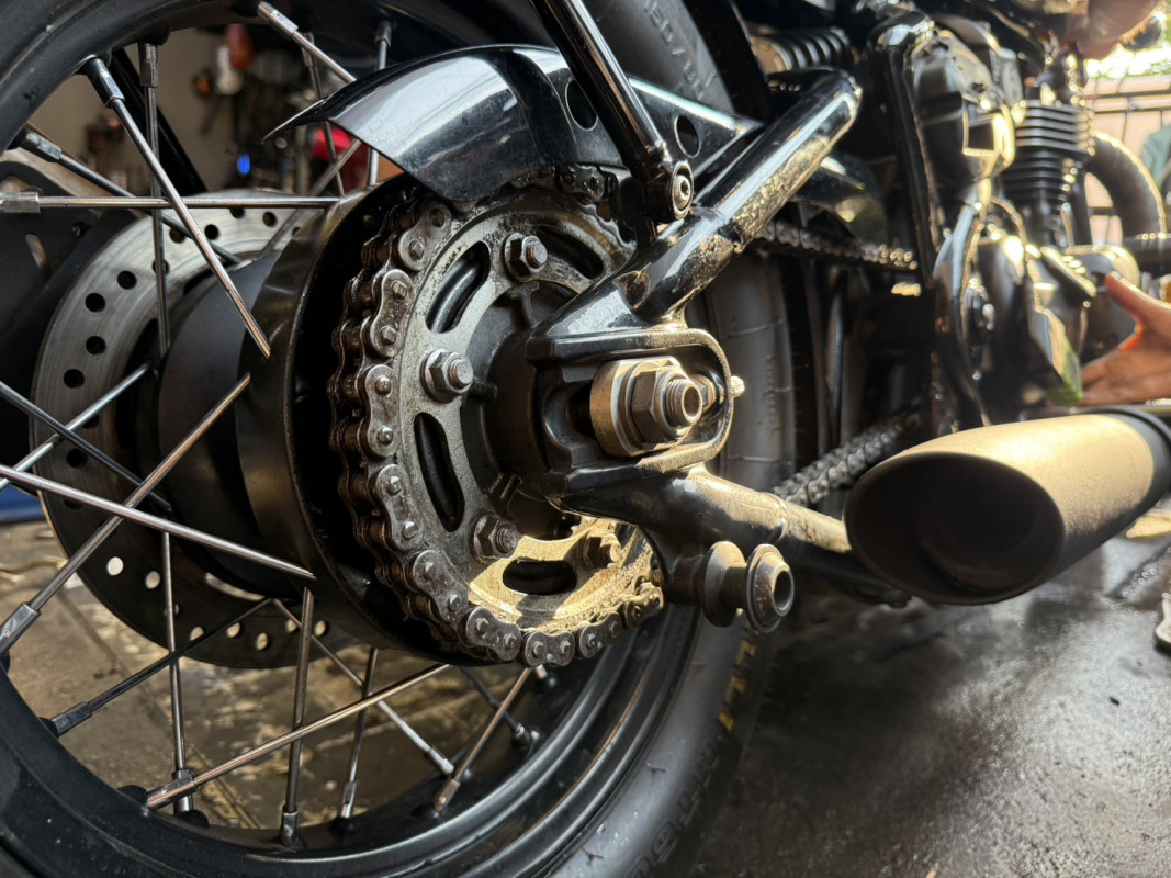 ลูกค้ารถมอเตอร์ไซค์บิ๊กไบค์ Triumph Bonneville Bobber เข้ารับบริการ เซอร์วิส เปลี่ยนน้ำมันเครื่อง รับประกันคุณภาพงาน โดย 38 SERVICES ร้านตั้งอยู่ ณ ถ.พุทธมณฑลสาย 2 กรุงเทพมหานคร