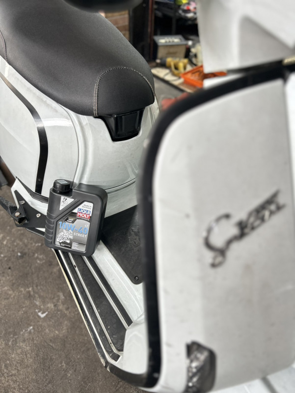 ลูกค้ารถมอเตอร์ไซค์ Lambretta V 200 เข้ารับบริการ เซอร์วิส เปลี่ยนน้ำมันเครื่อง รับประกันคุณภาพงาน โดย 38 SERVICES ร้านตั้งอยู่ ณ ถ.พุทธมณฑลสาย 2 กรุงเทพมหานคร