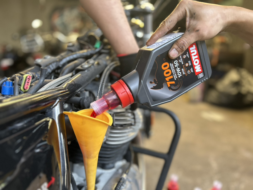 ลูกค้ารถมอเตอร์ไซค์ Royal Enfield Interceptor 650 เข้ารับบริการ เซอร์วิส เปลี่ยนน้ำมันเครื่อง รับประกันคุณภาพงาน โดย 38 SERVICES ร้านตั้งอยู่ ณ ถ.พุทธมณฑลสาย 2 กรุงเทพมหานคร