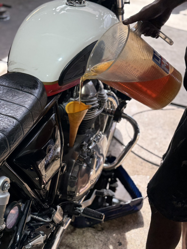 ลูกค้ารถมอเตอร์ไซค์ Royal Enfield Interceptor 650 เข้ารับบริการ เซอร์วิส เปลี่ยนน้ำมันเครื่อง รับประกันคุณภาพงาน โดย 38 SERVICES ร้านตั้งอยู่ ณ ถ.พุทธมณฑลสาย 2 กรุงเทพมหานคร