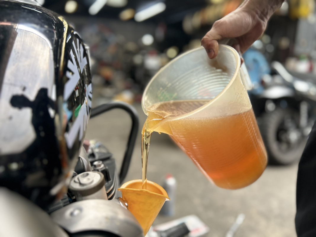 ลูกค้ารถมอเตอร์ไซค์ Triumph Bonneville Bobber เข้ารับบริการ เปลี่ยนน้ำมันเครื่อง เช็คระยะ รับประกันคุณภาพงาน โดย 38 SERVICES ร้านตั้งอยู่ ณ ถ.พุทธมณฑลสาย 2 กรุงเทพมหานคร