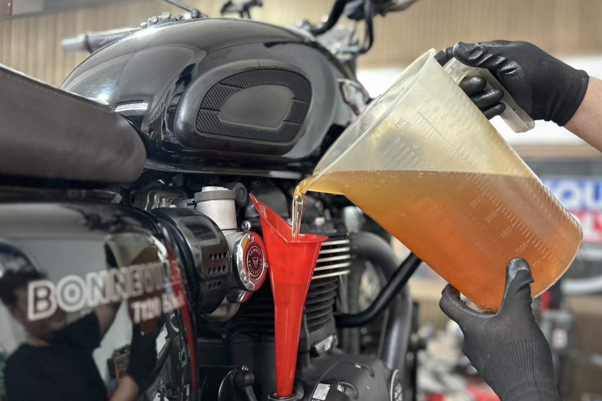 ลูกค้ารถมอเตอร์ไซค์ Triumph Bonneville T120 เข้ารับบริการ เซอร์วิส เปลี่ยนน้ำมันเครื่อง รับประกันคุณภาพงาน โดย 38 SERVICES ร้านตั้งอยู่ ณ ถ.พุทธมณฑลสาย 2 กรุงเทพมหานคร