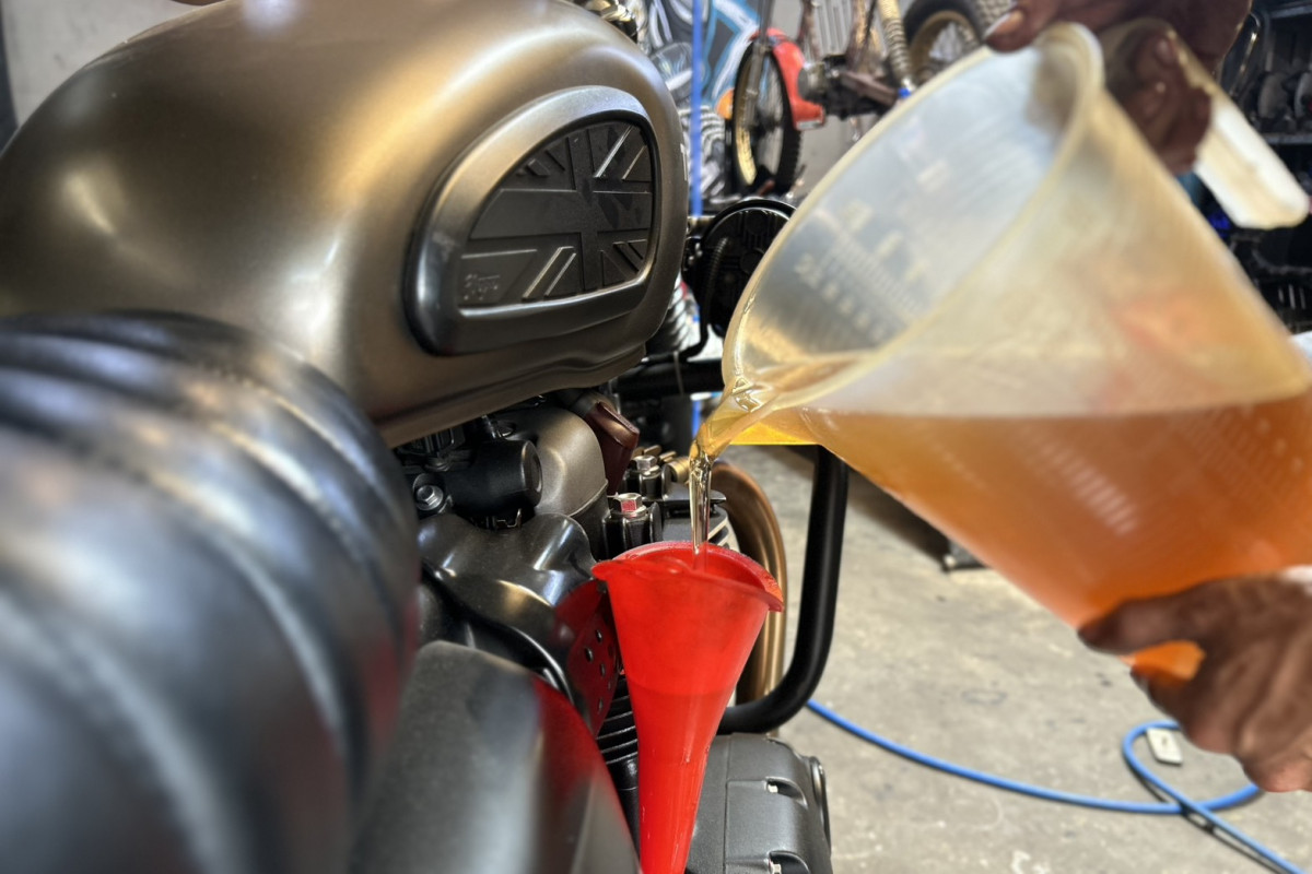 ลูกค้ารถมอเตอร์ไซค์ Triumph Street Twin 900 เข้ารับบริการ เซอร์วิส เปลี่ยนน้ำมันเครื่อง รับประกันคุณภาพงาน โดย 38 SERVICES ร้านตั้งอยู่ ณ ถ.พุทธมณฑลสาย 2 กรุงเทพมหานคร